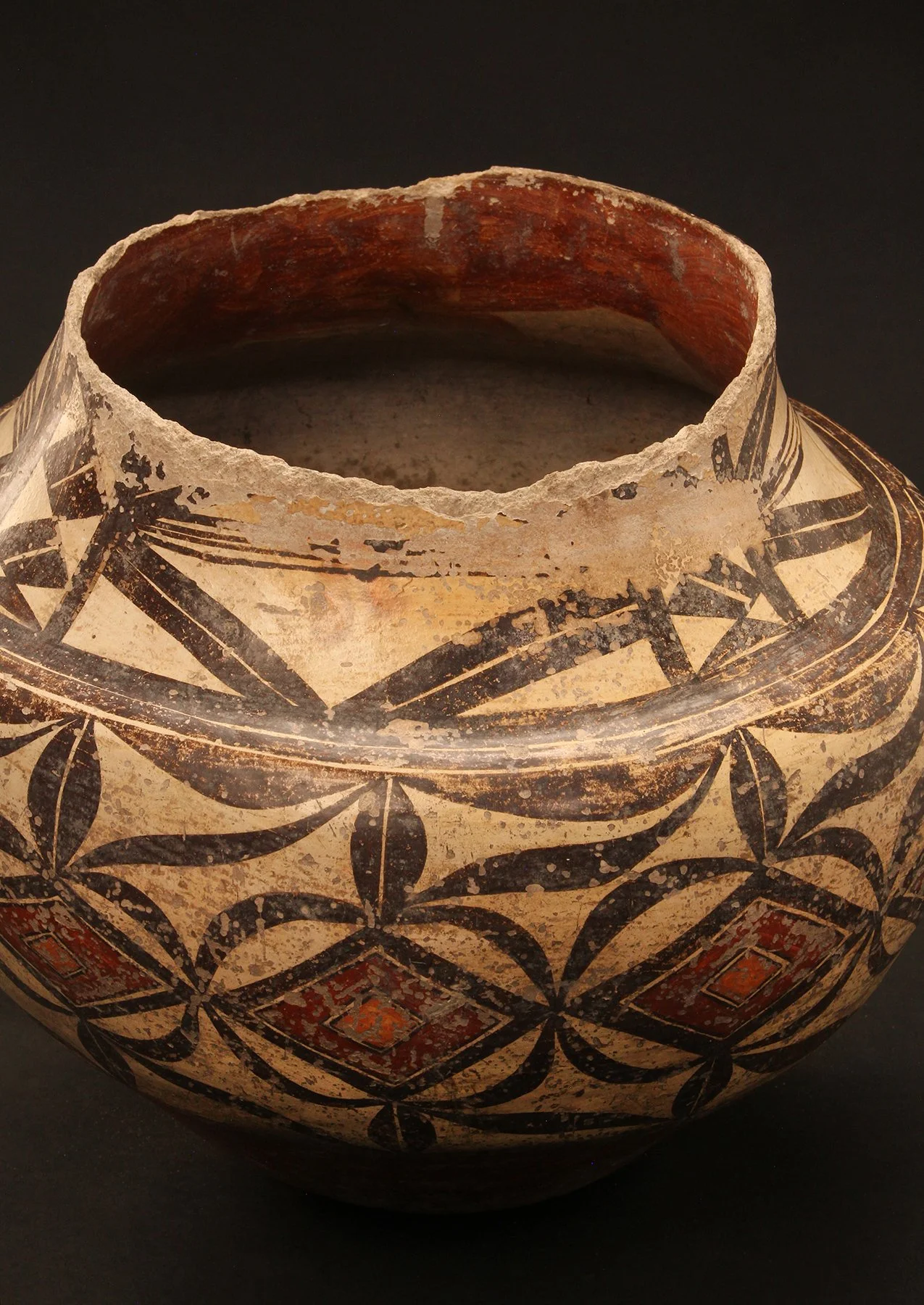 Important early Stevenson Period Acoma Olla in as found condition with ethnographic use wear, New Mexico